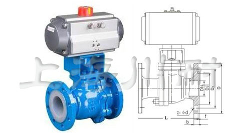 Q641F46氣動襯氟球閥尺寸: