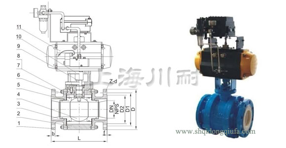 氣動氧化鋯(gào)陶瓷(cí)球閥結構圖: